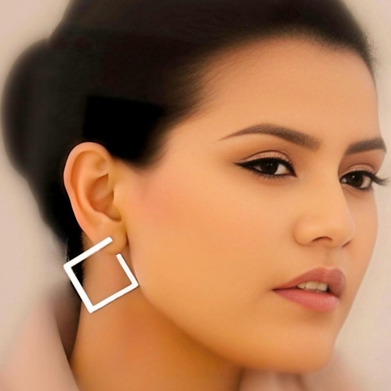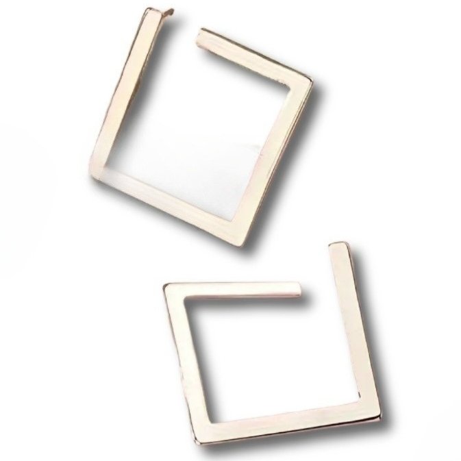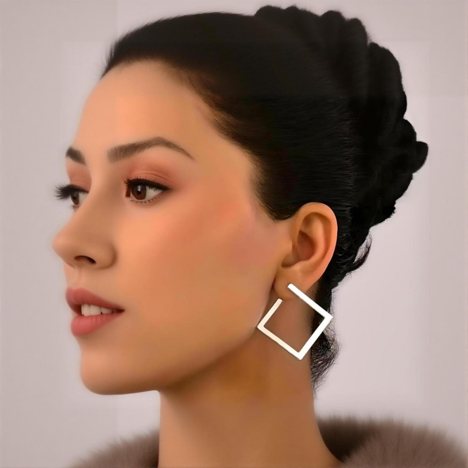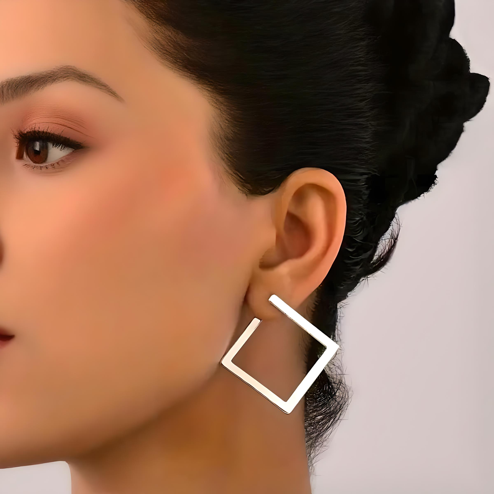 Dê um toque moderno e sofisticado ao seu visual com os brincos de design quadrado prateado. São hipoalérgicos e perfeitos para quem valoriza a elegância discreta.